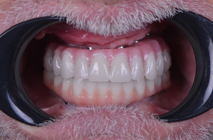 Three months later, the implants have integrated with the bone. The necessary measurements and impressions for the final prostheses were obtained.